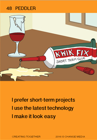 Peddler: I fix problems using short term projects, deploying the latest tech. I make it look easy and you can do it too. I pace, peddle and pressure as required.