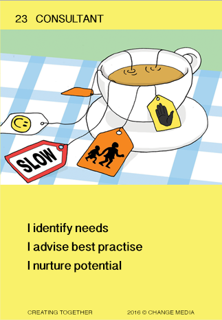 Consultant: I identify their needs, advise best practice and nurture potential. I’m paid to facilitate their progress, and institute the necessary regulations. I offer my advise in a friendly manner over copious cups of tea. I may need to micromanage and supervise to help them cope with their lack of knowledge. And I lovingly subdue any hasty ambitions, it takes time to grow out of hardship.