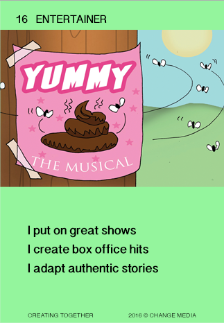 Entertainer: I put on spectacles, create hits and adapt authentic stories. We all need a little distraction from life's problems, and I'm happy to dumb it down to appeal to the masses. I create stories worth listening to, so of course I might need to change details to catch their attention.