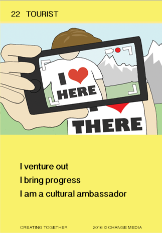 Tourist: I venture out, bring progress and represent the marginalised. I take a huge risk to venture into the margins of society, of course they should be grateful. I could be making lots of money elsewhere. It is really exotic to work out there, I get used to the poverty, but I couldn't live there. I can continue my good work when I get back, and share their stories of resilience, like a cultural ambassador.